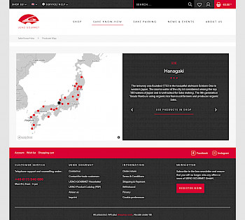 UENO Gourmet ist ein sehr Inhaltsintensiver Shop mit vielen Informationen zu den Produkten, der Kultur in Japan und dem Genuss von Sake. Das Multistore Setup mit unterschiedlichen Warehouses für die drei Shops EU, CH und UK waren eine gewisse Herausforderung in der Einrichtung. Insbesondere das Setup von Versand- und Zahlungskonditionen, Rechtstexte und E-Mails für die unterschiedlichen gesetzlichen Rahmenbedingen in der EU, der Schweiz und England. Dazu kommt die zweisprachige Umsetzung aller Inhalte und das sich in den unterschiedlichen Shops unterscheidende Produktangebot. Angenehm war das hochwertige Produktsortiment und die hohe Qualität an zweisprachiger inhaltlicher Zuarbeit.